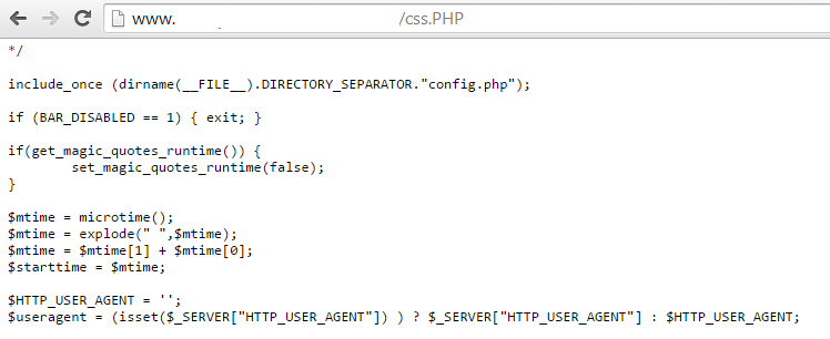 Suddenly, I realised that requesting the same page in uppercase or lowercase changed its behavior. The webserver was based on Apache and Linux (case sensitive) but the files seem to be hosted in a cases insensitive filesystem (maybe a NAS share?), so when I requested page.php it responded as expected, but when I requested page.PHP its source code was shown.